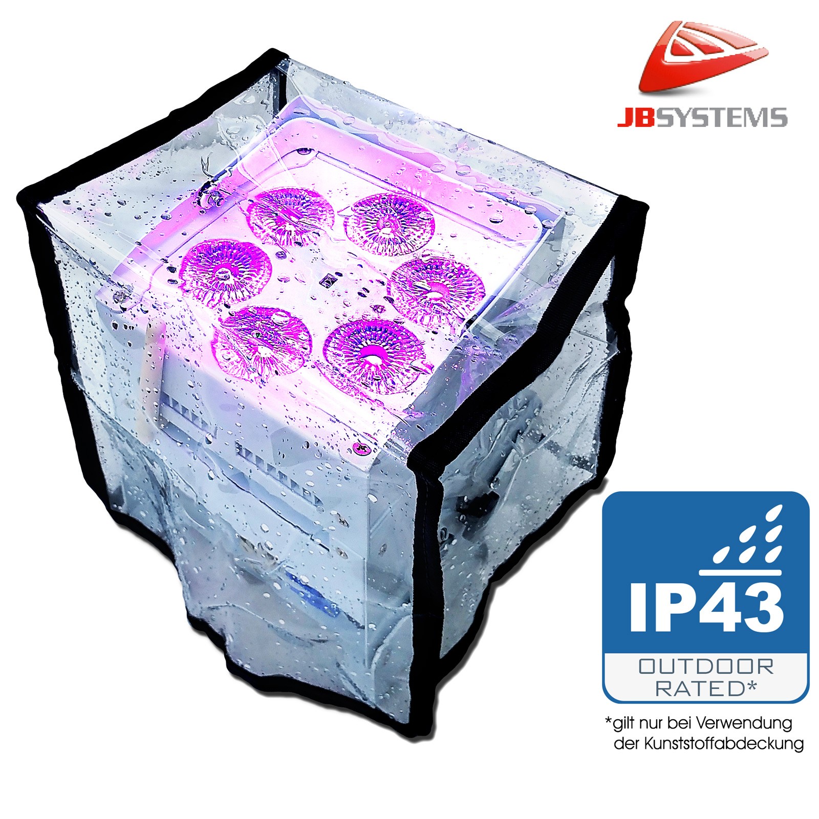 Der ACCU COLOR von JB Systems ist ein Akkubetriebener LED-Projektor, bestückt mit 6 Stück 10 Watt RGBWA LEDs und einem Abstrahlwinkel von 22° in einem eleganten weißen Gehäuse.