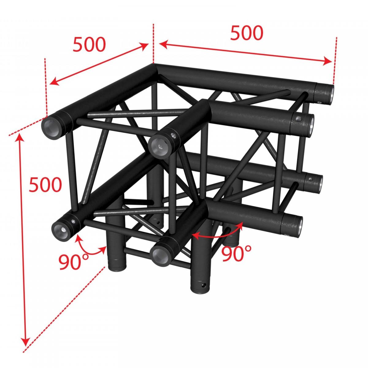 4-Punkt Traverse 3-Wege-Ecke 90 in schwarz