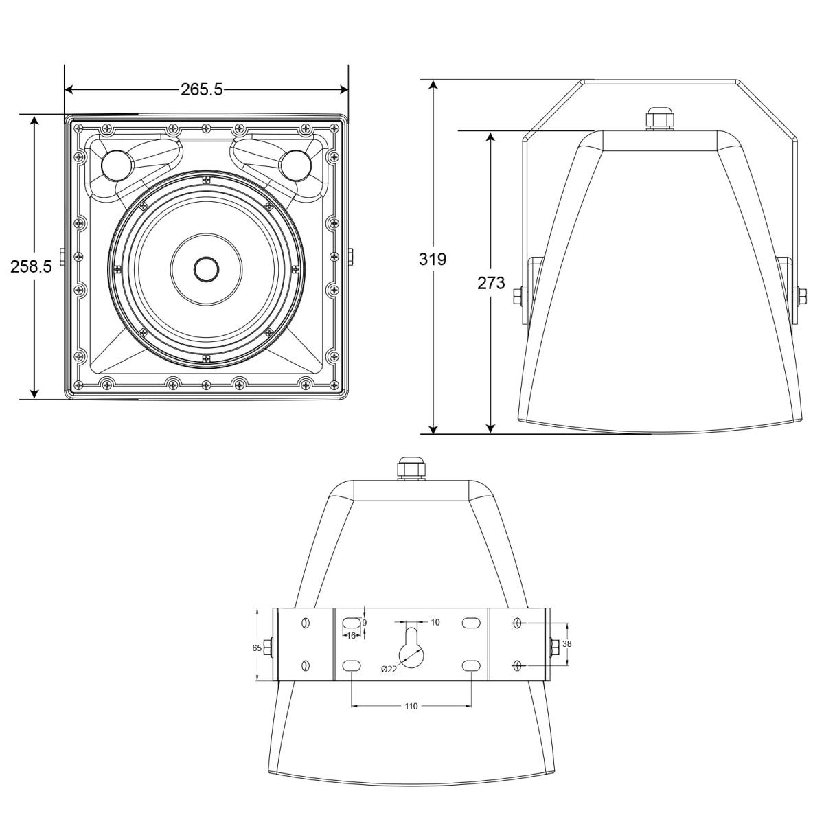 | Abmessungen | 258,5 x 256,5 x 273 mm |