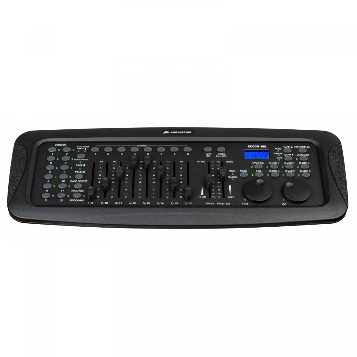 Der EZ-CON 192 von JB Systems ist ein vielseitiger DMX-Controller für mobile DJs, Kneipen und kleine Diskotheken. Der kompakte Controller eignet sich um z.B. Scanner und Movingheads (bis zu 12 Geräte mit max. je 16 Kanälen) zu steuern.