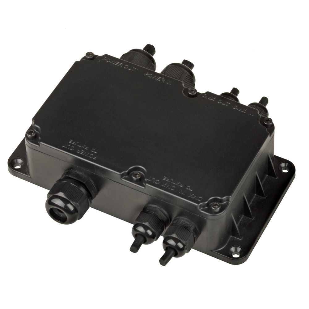 Wasserdichte Anschlussdose für die Briteq LDP-Serie und andere DMX-Projektoren im Freien.