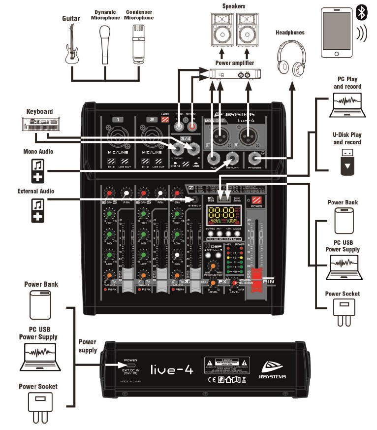 Das LIVE-4 ist ein kompakter und vielseitiger 3-Kanal PA-Mixer.