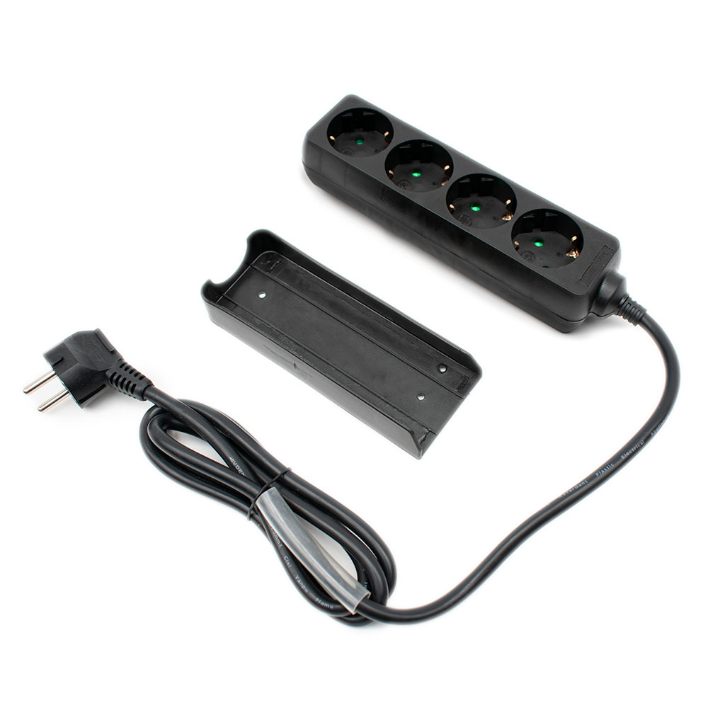 4-fach Schukoleiste mit Montage-Schiene für maximal 3680 Watt.