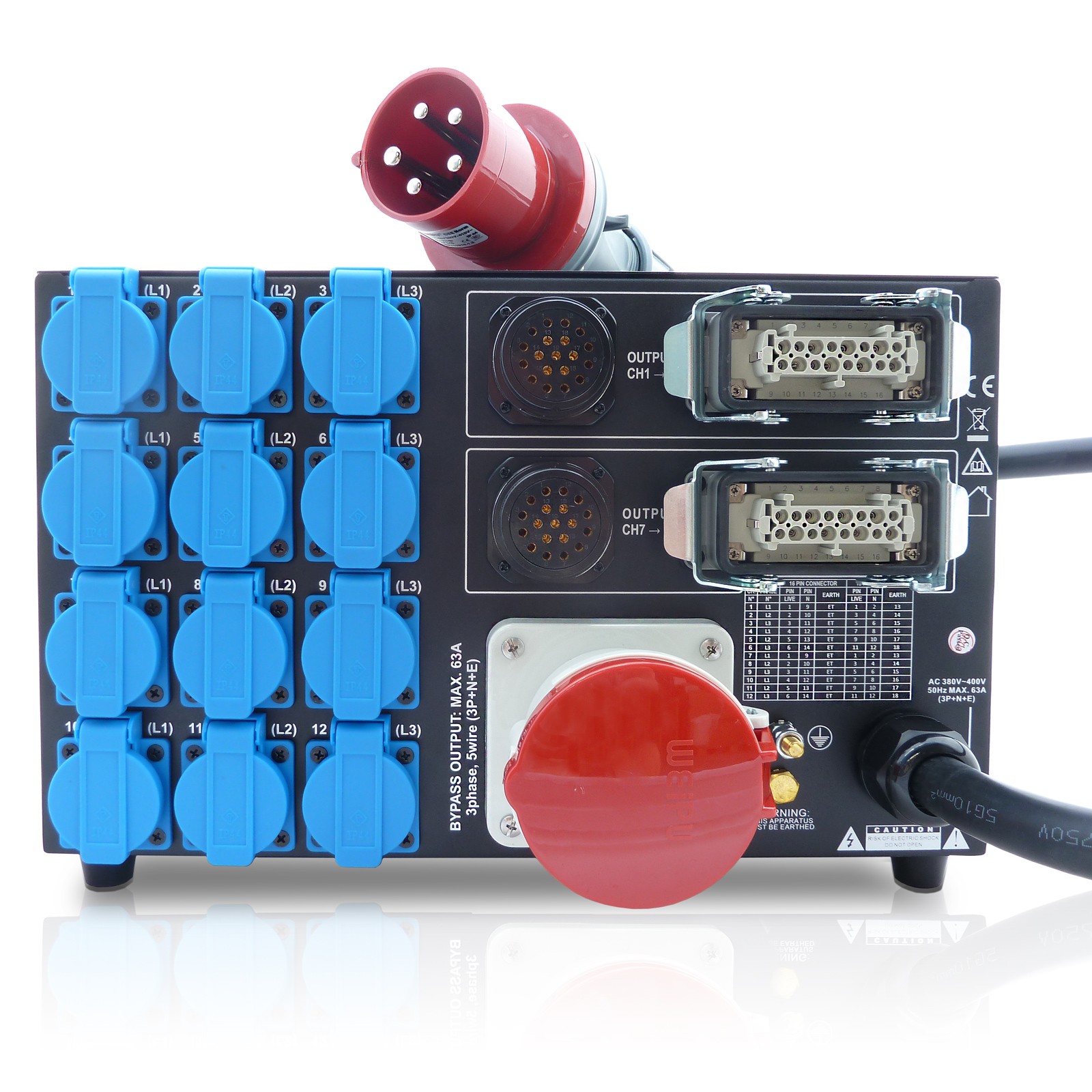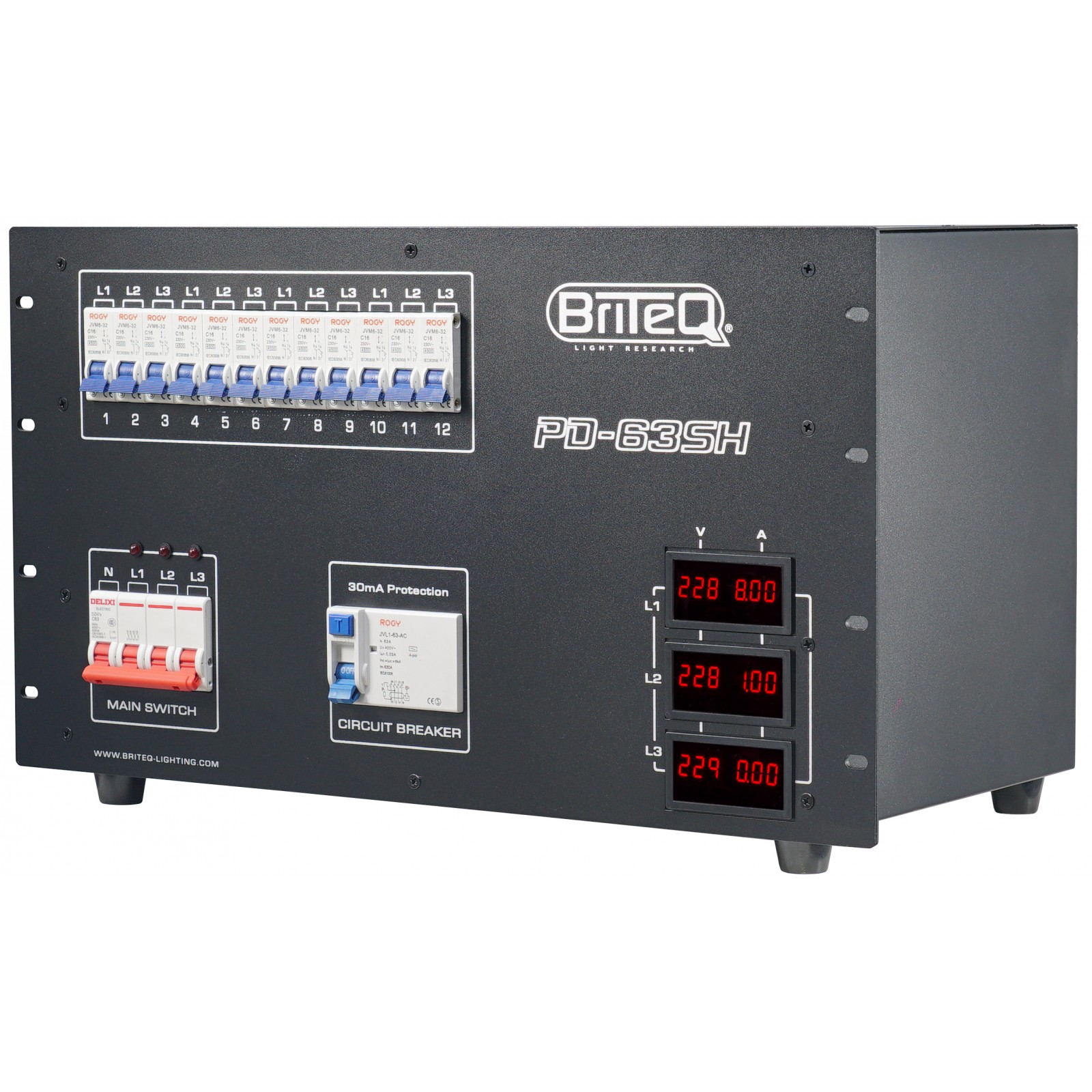 Der PD-63SH Drehstromverteiler von Briteq wurde entwickelt, um die Sicherheit sowohl in mobilen als auch in festen Anlagen zu verbessern. Das Design und die Bauweise mit einer überdimensionierten internen Verkabelung, für erhöhte Zuverlässigkeit, erfüllen die höchsten europäischen und internationalen Sicherheitsstandards.