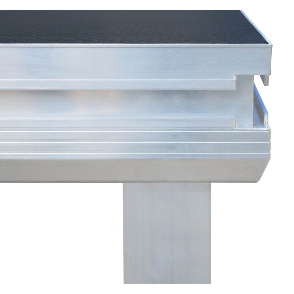 Professionelles 1×1 Meter Bühnenelement von Contestage, für Innen- und nicht dauerhafte Außenanwendungen.