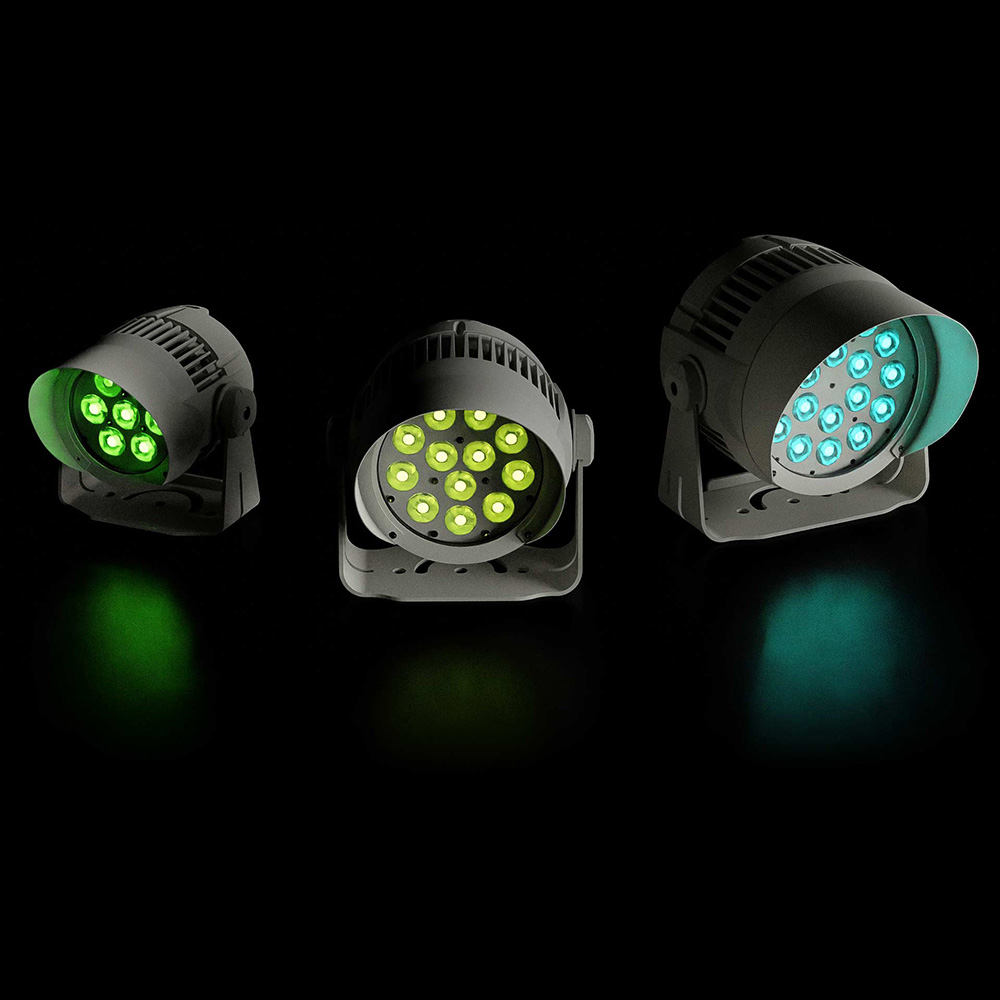 Der VPAR-150RGBL von CONTEST ist ein kompakter Architektur-Projektor mit 15x20Watt RGBL LEDs und Schutzklasse IP 66.