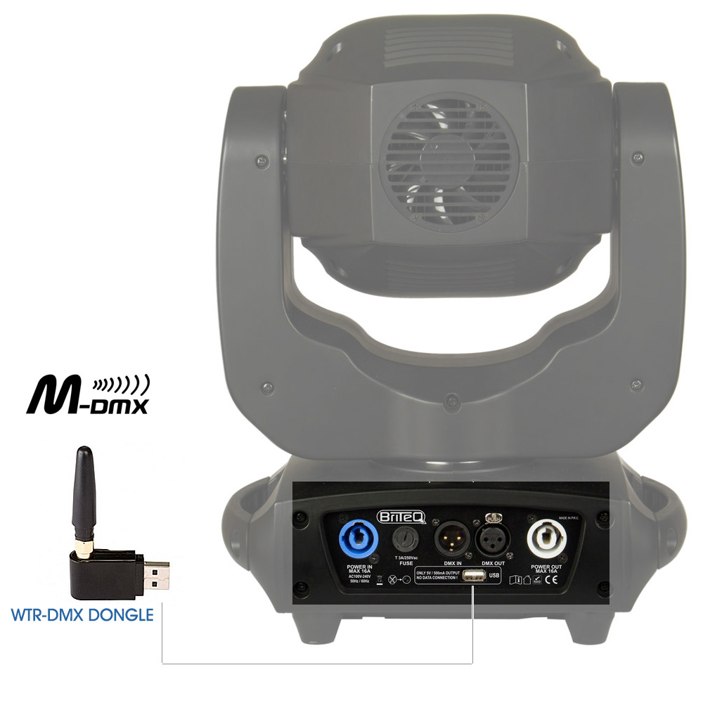 USB Dongle von Briteq für das senden und empfangen von drahtlosen DMX Signalen. Kompatibel mit zahlreichen JB-Systems und Briteq Produkten.